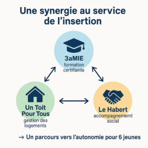 Comment suivre une formation sans toit au-dessus de sa tête ? C’est à cette question essentielle que répond le dispositif Forme-Toit, porté par Un Toit Pour Tous, 3aMIE et Le Habert. Grâce à un partenariat innovant, six jeunes majeurs migrants sont hébergés dans des colocations sécurisées tout en suivant une formation qualifiante dans des métiers en tension (plomberie, peinture, électricité, carrelage…). Une initiative concrète et humaine, qui fait rimer insertion et dignité.