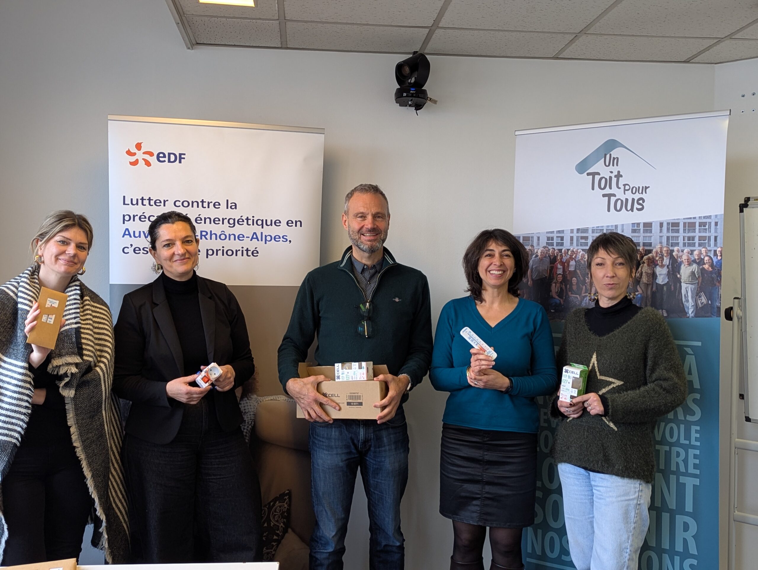 Dons d’ampoules LED, interrupteurs on/off, thermomètre de logement etc.  Un Toit Pour Tous et EDF renouvellent leur partenariat pour lutter ensemble contre la précarité énergétique des ménages.