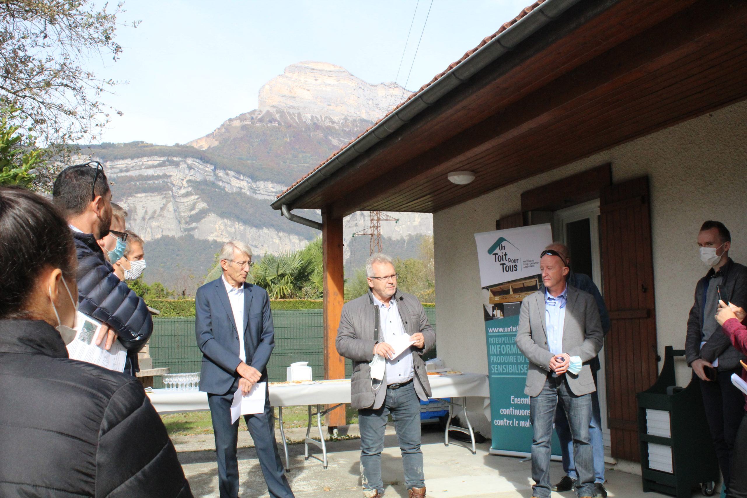L’inauguration a eu lieu en présence de P.Lorimier, maire de Crolles, des conseillers adjoints, de P.Coste, président d’Un Toit Pour Tous-Développement et des salariés et bénévoles d’Un Toit Pour Tous.